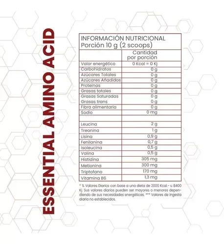 Los aminoácidos esenciales son aquellos que el organismo no puede sintetizar y sólo puede obtenerlos a través de su ingesta. Estos 9 aminoácidos son la histidina, isoleucina, leucina, lisina, metionina, fenilalanina, treonina, triptófano y valina. La presencia de los mismos es fundamental para la formación de proteínas que conforman los músculos y ayudan al organismo en todos sus procesos vitales. Ha sido estudiado que, frente a la falta de sólo uno de ellos, la producción de proteínas se encuentra completamente inhibida, y el organismo recurre a la degradación del tejido muscular para obtenerlo. Dentro de los aminoácidos esenciales, los más mencionados son los de cadena ramificada o BCAA. EAA+ ESENTIAL AMINO ACID provee una proporción de Leucina, Isoleucina y Valina de 4:1:1. La suplementación crónica de BCAA mejora la aptitud física. La suplementación de los mismos al inicio del entrenamiento suprime eficazmente la degradación del músculo esquelético inducida por el ejercicio.