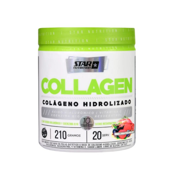 Suplemento dietario en polvo dietético a base de Colágeno hidrolizado, Coenzima Q10, Acido Hialurónico, Resveratrol y Vitamina C. El colageno es una proteina fundamental para la formacion de tejidos en nuestro organismo , entre ellos tendones , pelo , piel , uñas, ligamentos , cartilagos, vasos sanguineos e intestinos. Es por ello que Star Nutrition ha realizado una combinacion perfecta entre colageno + vitamina C + Acido hialuronico + Resveratrol , para que la persona que lo consuma pueda complementar su alimentacion y lograr sus objetivos de cuidado corporal , pero ademas sirve a deportistas para prevenir lesiones y mejorar la recuperacion , Su sabor de Limon genera que sea algo practico de tomar , pero ademas super agradable para consumirlo. Que esperas para probarlo ?