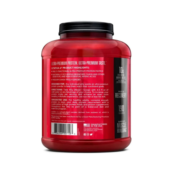 Syntha-6 de BSN combina múltiples fuentes de proteína de diferente velocidad de absorción para conseguir un perfil de absorción secuencial y un aminograma único.Syntha-6 es una proteína multifuncional perfecta para ser consumida en cualquier momento del día, especialmente después del entrenamiento, entre horas o antes de dormir para mantener tus músculos nutridos durante horas con la proteína más completa.