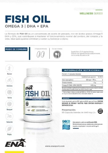 Descubrí el poder del Fish Oil Omega 3 de ENA, un suplemento premium desarrollado con aceite de pescado concentrado, fuente natural de DHA y EPA. Su fórmula apoya la salud cardiovascular, cerebral y visual, promoviendo el bienestar integral.